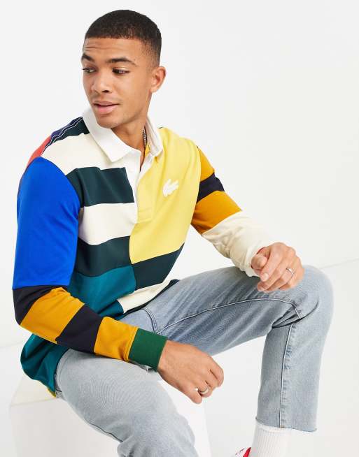 Lacoste colour block panel long sleeve polo in multi ASOS