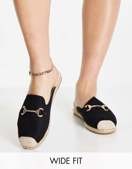 London Rebel wide fit espadrille mules with snaffle trim in black