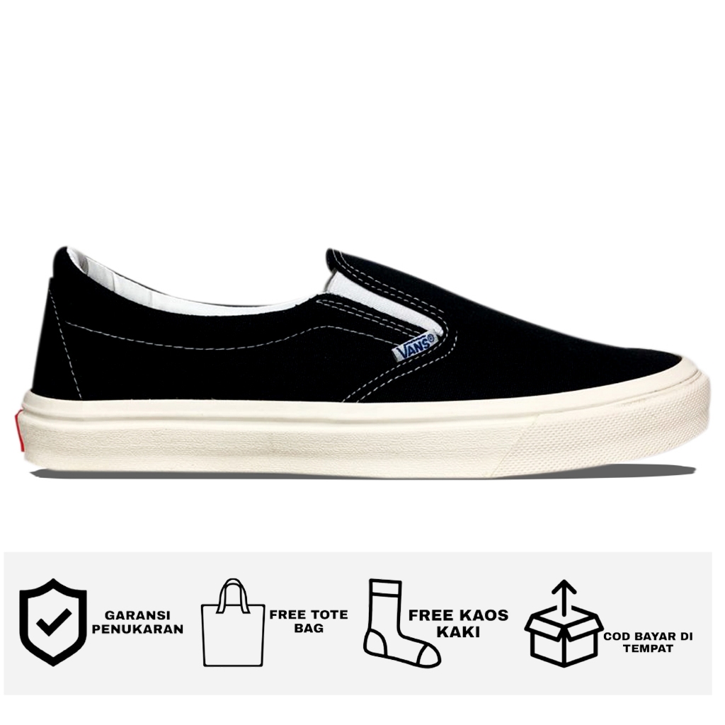 Jual Sepatu vans slip on mono black white pria wanita keren bonus