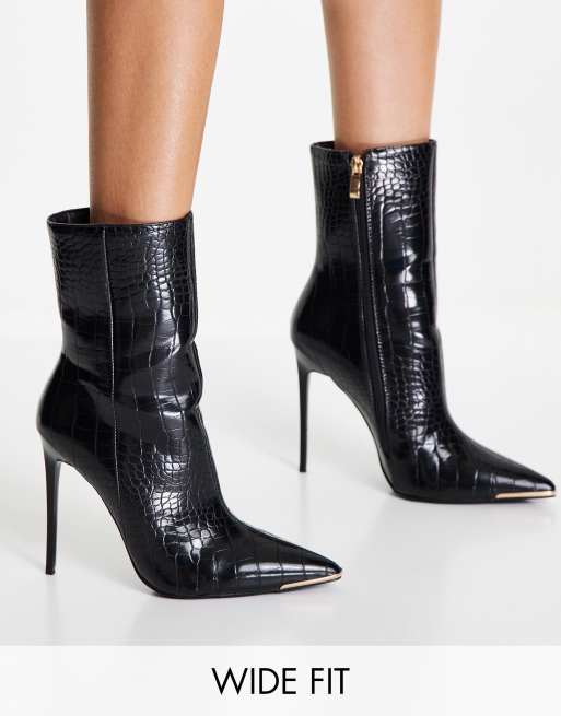 SIMMI London Bottes pointure large talon effet croco Noir ASOS