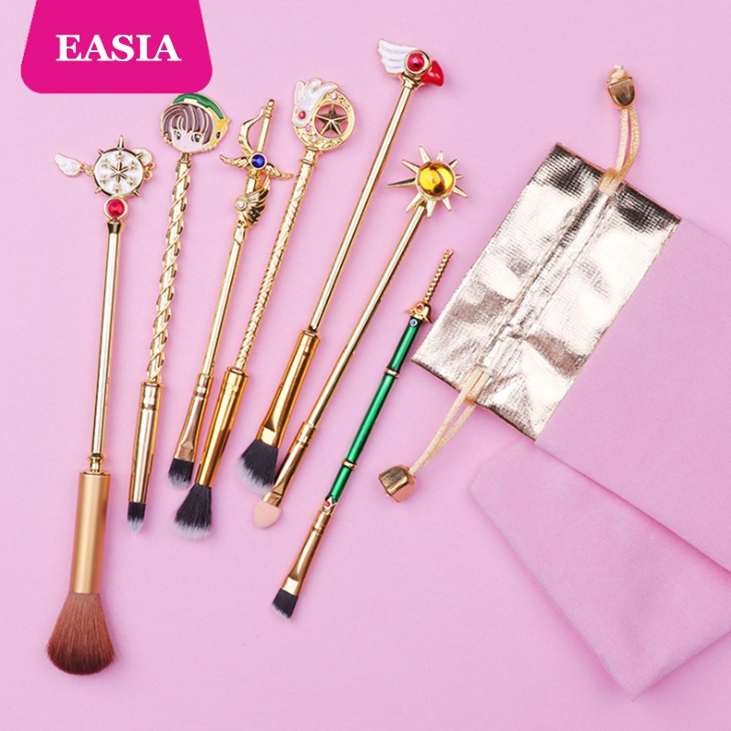 New 7Pcs Solid Metal Magic Wand Cardcaptor Sakura Makeup Brush Set