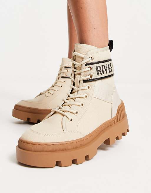 Islands boots outlet, River Island branded canvas boots in beige outlet