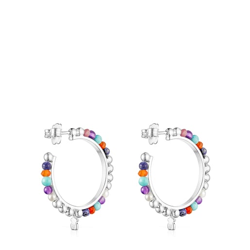 Pendientes tous de outlet perlas y plata, Pendientes aro de plata con perlas y gemas Oceaan Color TOUS outlet