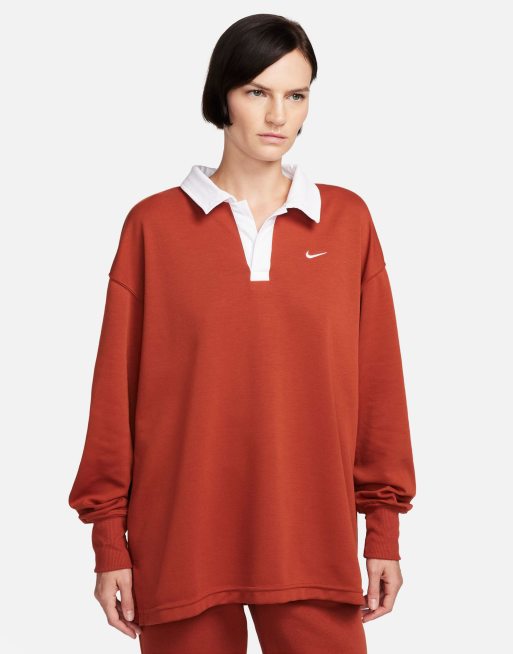 Nike mini swoosh oversized long sleeve polo in rugged orange ASOS