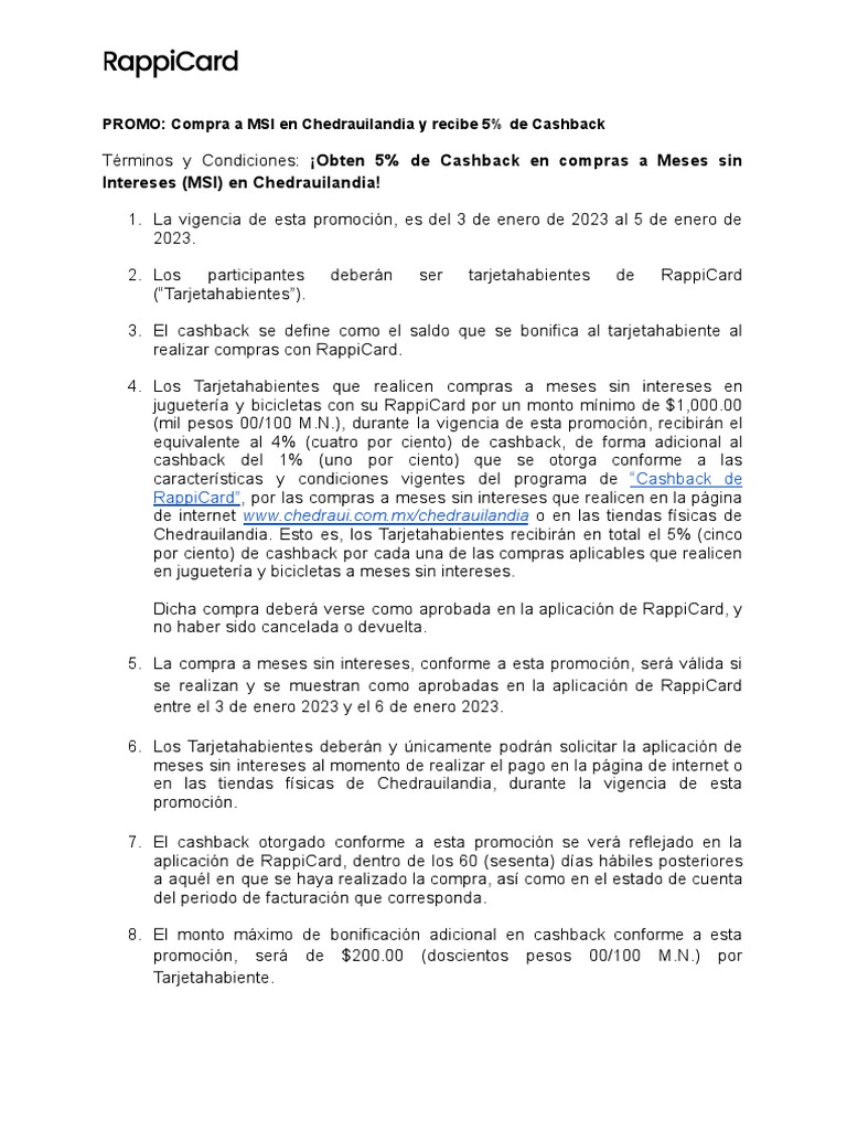 Promoci n de 5 de cashback en compras a MSI en Chedrauilandia y