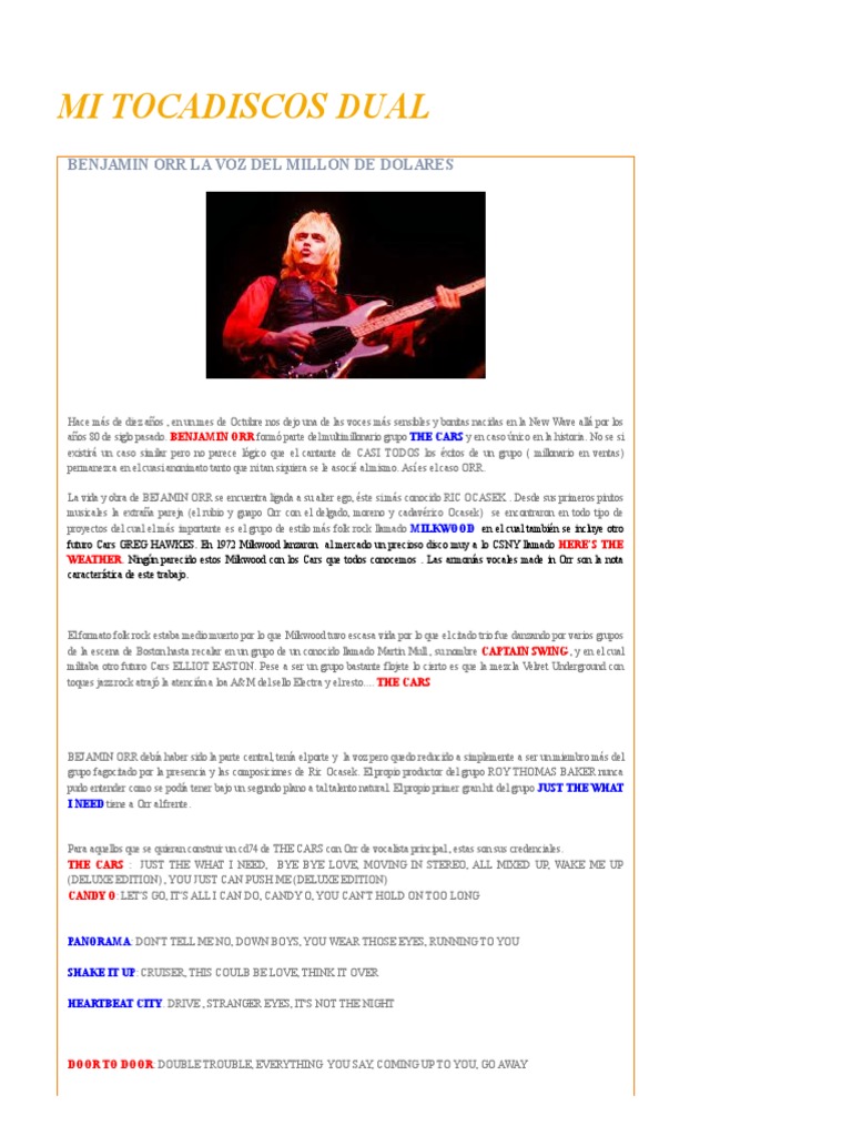 Mi outlet tocadiscos dual, Mi Tocadiscos Dual Benjamin Orr La Voz Del Millon de Dolares PDF outlet