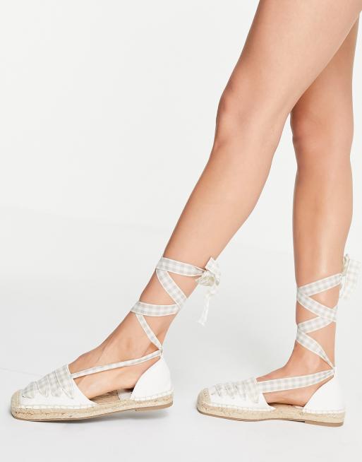 Stradivarius Espadrilles lacets et carreaux vichy Beige