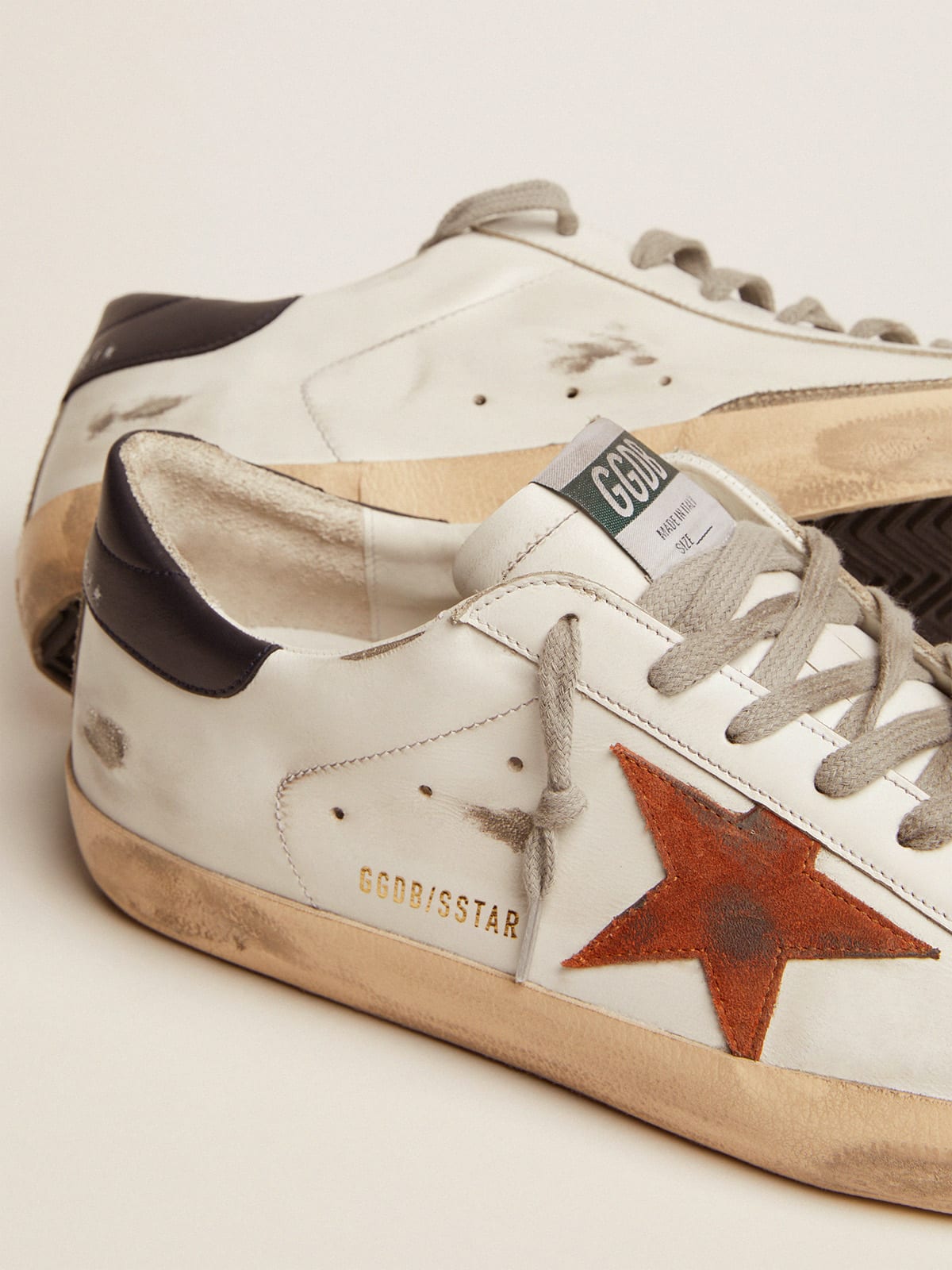 Super Star with orange suede star and dark blue leather heel tab