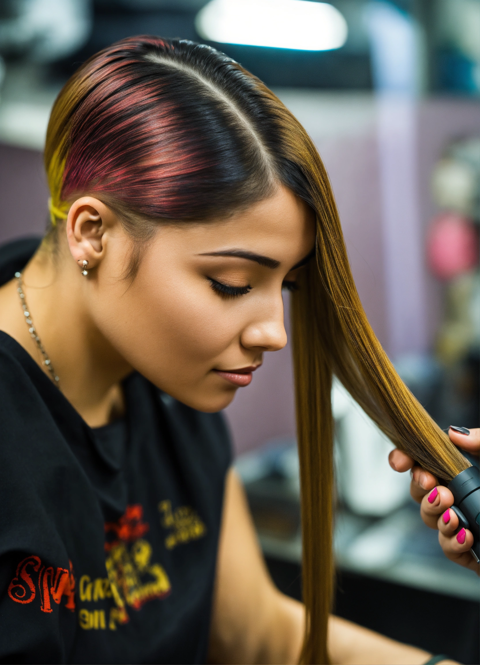 Lexica UNA MUJER ESTILO CHOLA CORTANDO CABELLO A UN CLIENTE CON