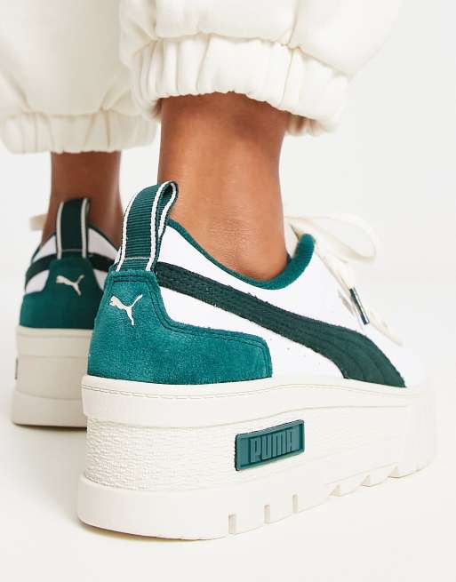 Puma Mayze Sneakers met sleehak in gebroken wit en groen