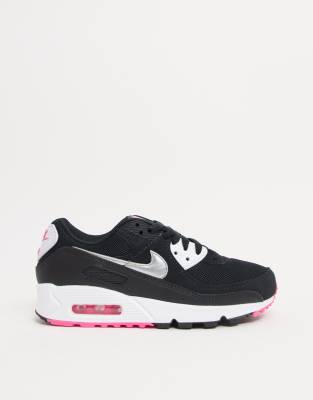 Nike Air Max 90 Sneakers in zwart zilver en roze ASOS