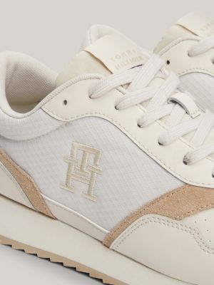 Leren hardloopsneaker met TH monogram Beige Tommy Hilfiger