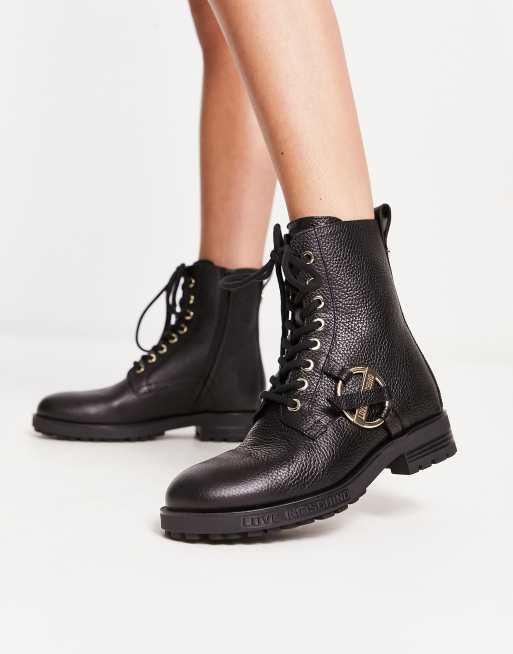 Combat Boots Women s GEOX Hoara D16FTC Boots Leather Biker