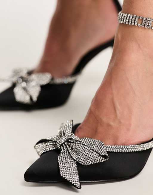 Steve Madden Live Up Hakken met versierde strik in zwart satijn