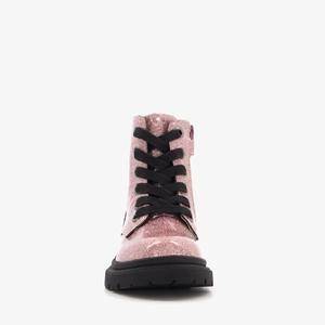 TwoDay leren meisjes veterboots met glitter roze maat 25