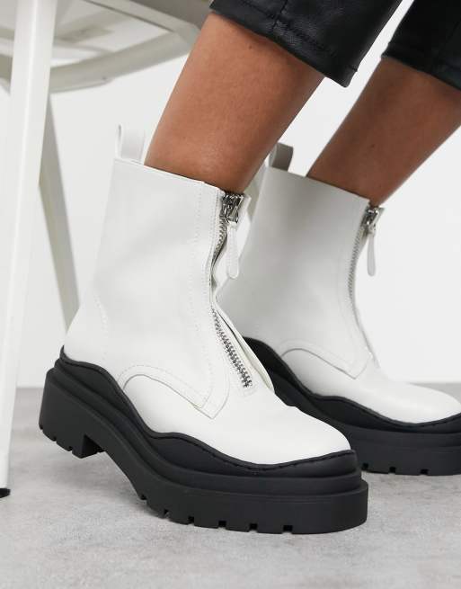 Mango laarzen met dikke zool en rits aan de voorkant in wit