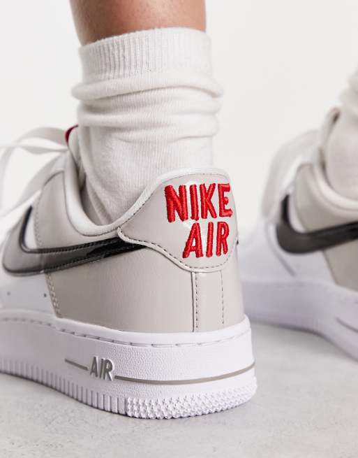 Nike air force outlet 1 grijs wit, Nike Air Force 1 07 Sneakers in grijs wit en rood ASOS outlet