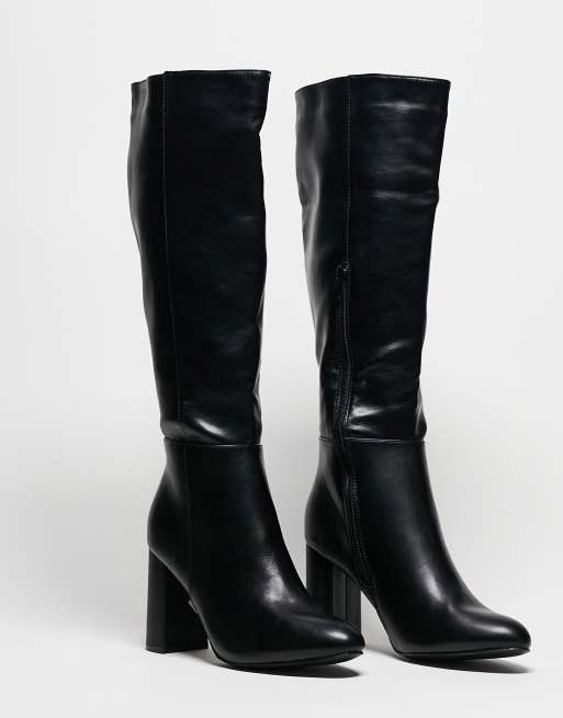 Yours wide fit heeled high leg boot in black