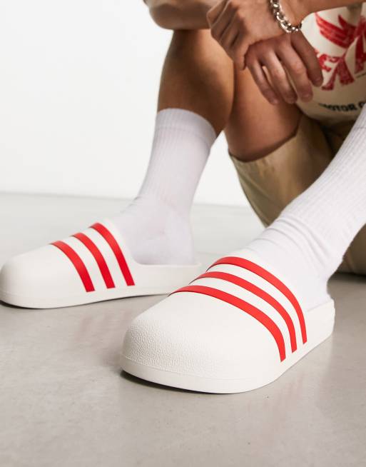 adidas Originals FOM adilette Claquettes Blanc et rouge ASOS