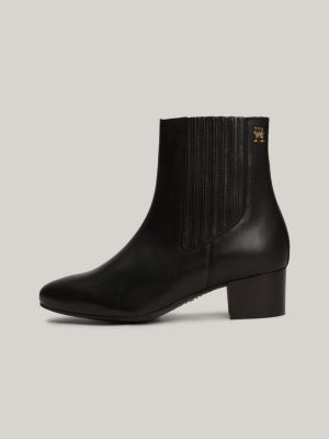 Essential leren enkellaars met blokhak Zwart Tommy Hilfiger