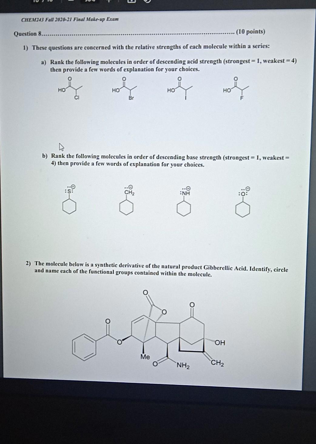 Solved CHEM243 Fall 2020 21 Final Make up Eram Question Chegg