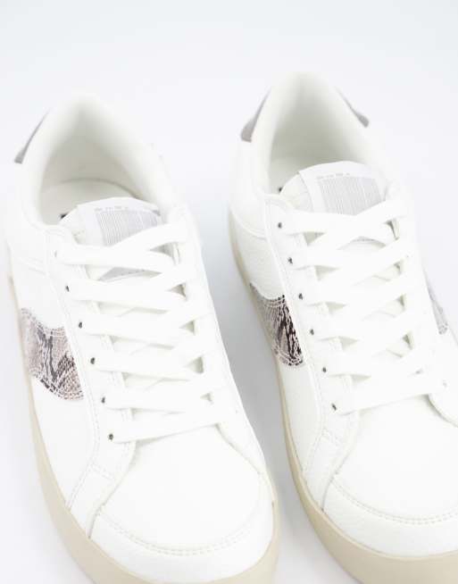 Sneakers outlet met slangenprint, Bershka Sneakers met labeltje met slangenprint in wit outlet