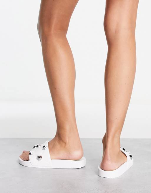 ASOS DESIGN Finery Claquettes matelass es clous Blanc ASOS