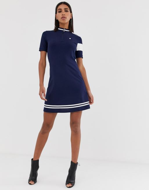 G Star Cergy cotton fitted dress with high neck zip