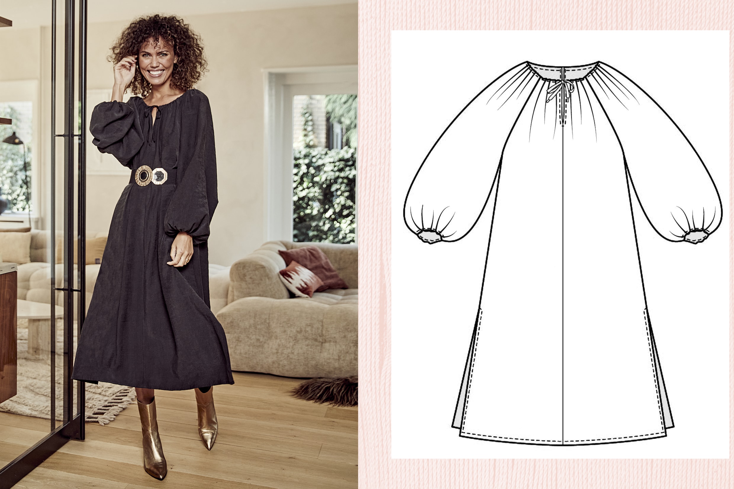 Aan de slag maak deze luchtige A lijn jurk met ballonmouwen zelf