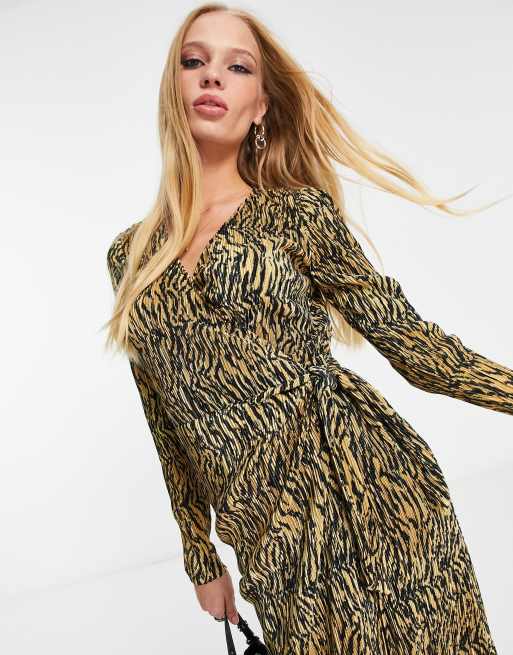 Tiger jurk Jurk dames Tijgerprint Ruffle Overslag Stoer