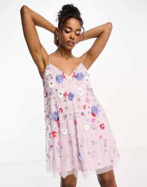Miss Selfridge Premium Mini jurk met versierde opvallend gekleurde bloemen