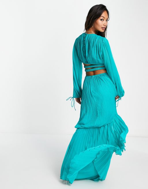 ASOS DESIGN Geplooide maxi jurk met gerimpelde ttaille in turquoise
