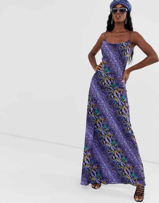TTYA Lange jurk met cami bandjes in paarse pythonprint ASOS