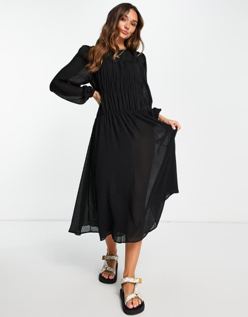 Mango Gesmokte midi jurk in zwart