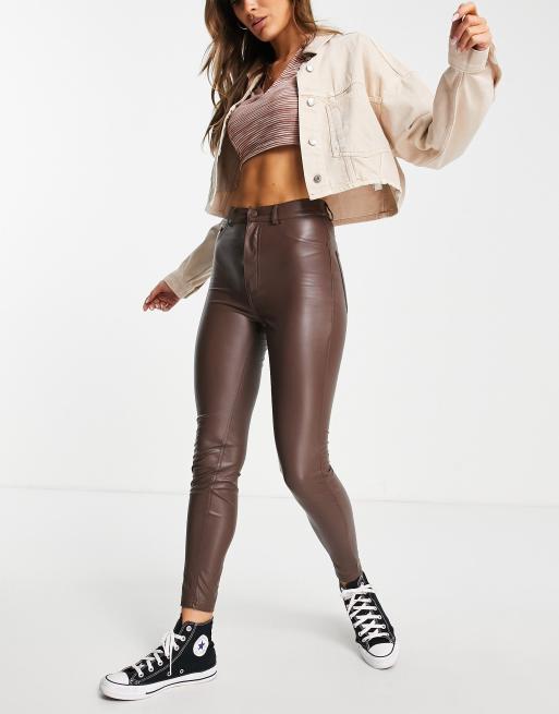 Pull Bear Skinny leren broek met hoge taille in bruin