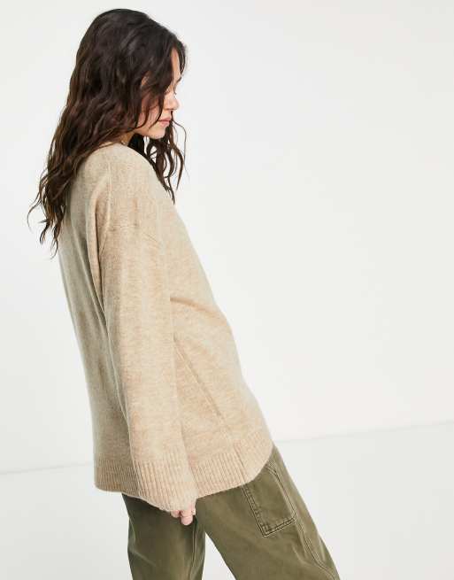 Only outlet oversized trui, Only high neck oversized sweater in beige outlet