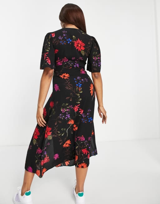 ASOS DESIGN Midi jurk met uitlopende mouwen en bloemenprint in