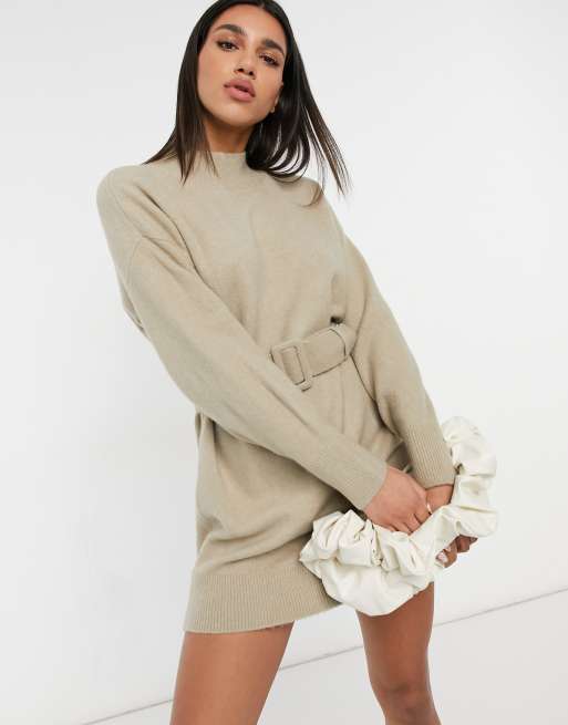 Other Stories Gebreide mini jurk met riem in beige ASOS