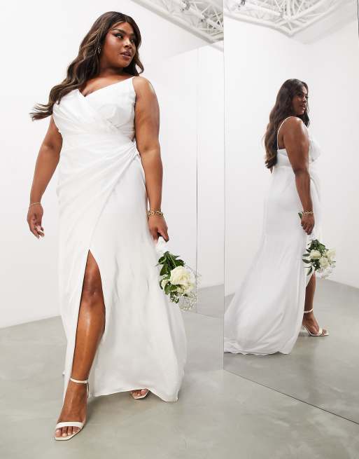 ASOS DESIGN Curve Constance Satijnen trouwjurk met overslag