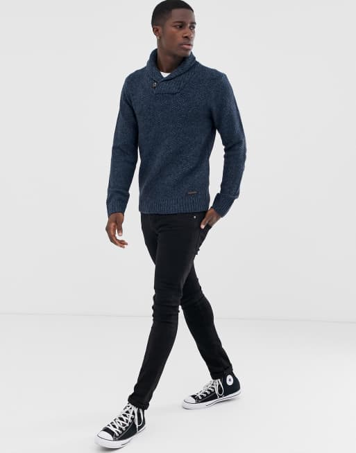 Pier outlet one trui, Pier One Gebreide trui in blauw met sjaal kraag outlet
