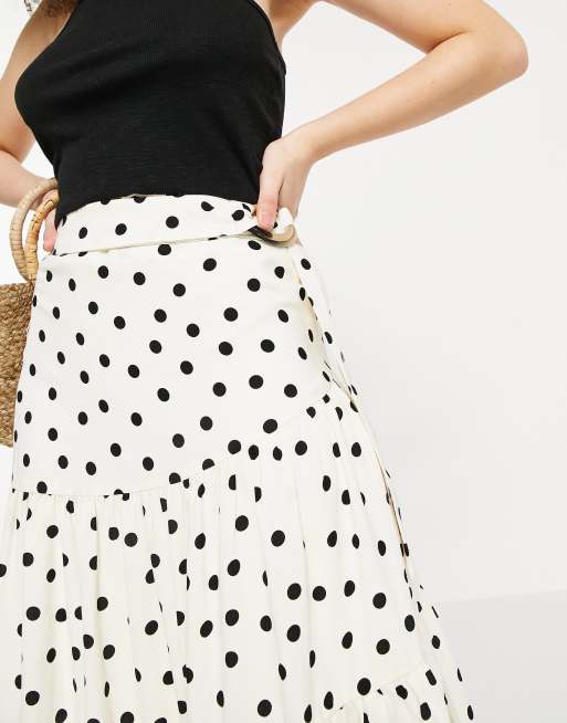 Stradivarius Lange rok met riem en stippen in ecru