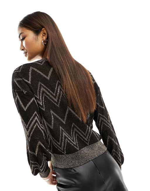 Only Lichtgewicht trui met chevronmotief in zwart en gouden