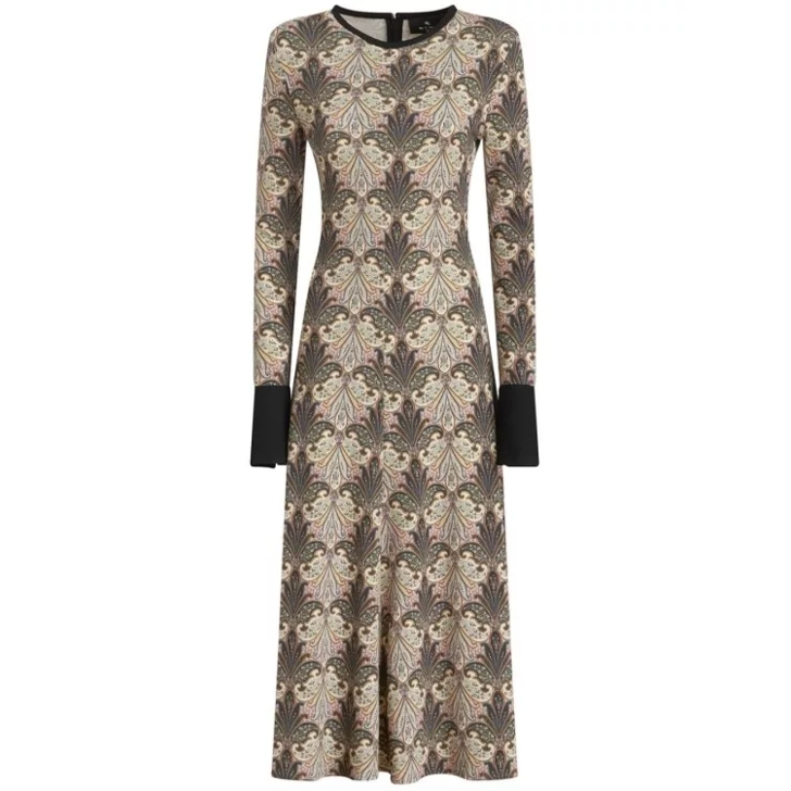 Etro Long Sleeved Midi Dress Multicolor Midi Jurken