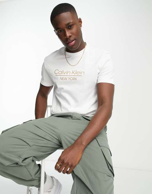 Calvin Klein T shirt met logo in het midden in wit ASOS