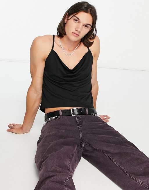 ASOS DESIGN Gedrapeerd hemdje met spaghettibandjes in zwart ASOS