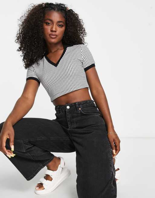 Urban Revivo Preppy polotop met V hals contrasterende kraag en