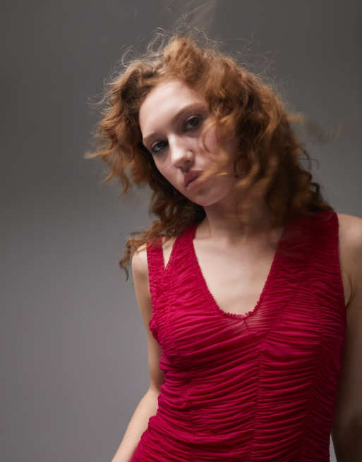 Topshop Hemdje van mesh met naaddetails rimpeleffect en dubbele