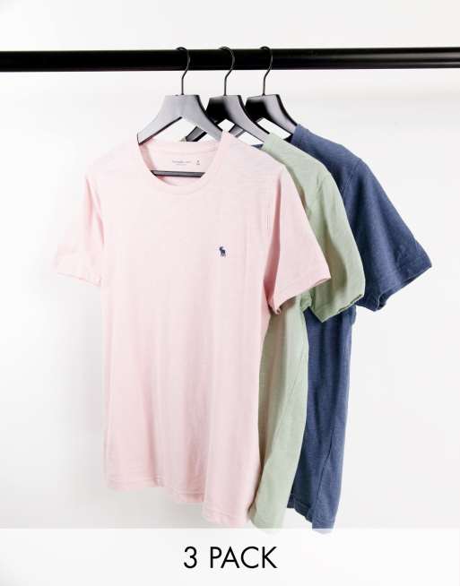 Abercrombie Fitch 3 pack icon logo t shirt in pink green blue ASOS