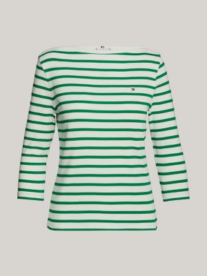 Three Quarter Sleeve Boat Neck T Shirt Green Tommy Hilfiger