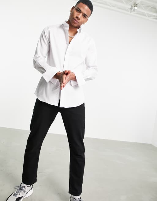 Seidensticker shaped fit overhemd dubbele manchet met Kent kraag wit